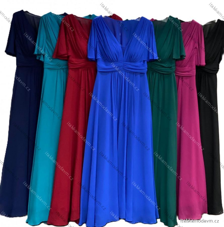 Šaty dlouhé společenské krátký rukáv dámské nadrozměr (46/48/50 ONE SIZE) ITALSKÁ MÓDA IMC25524