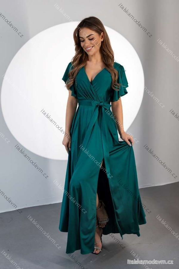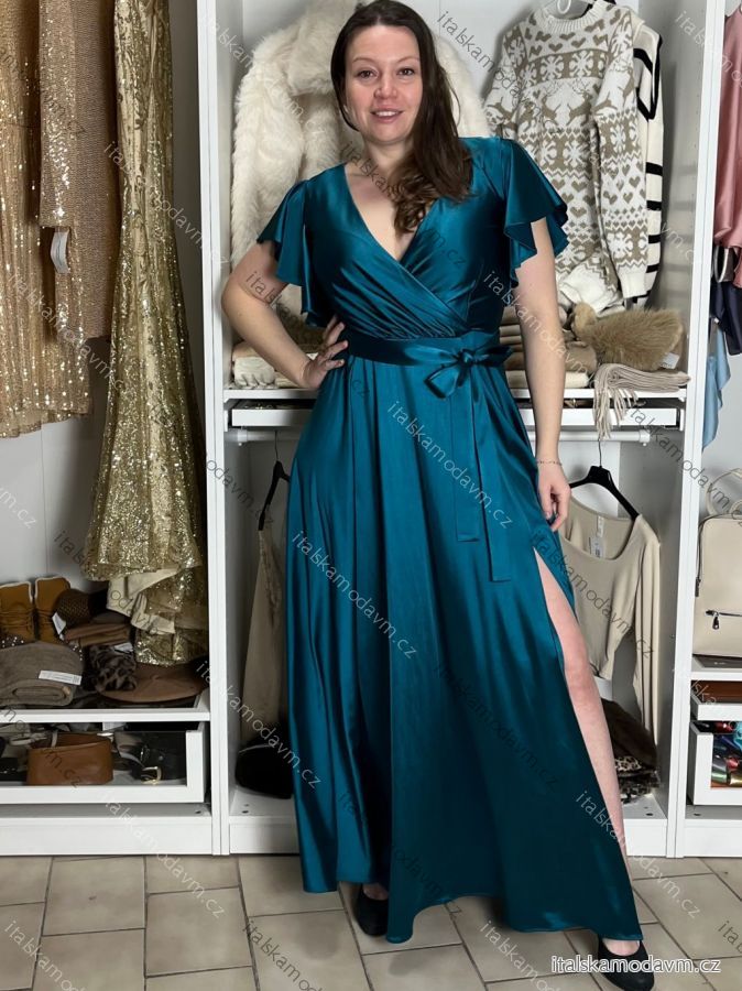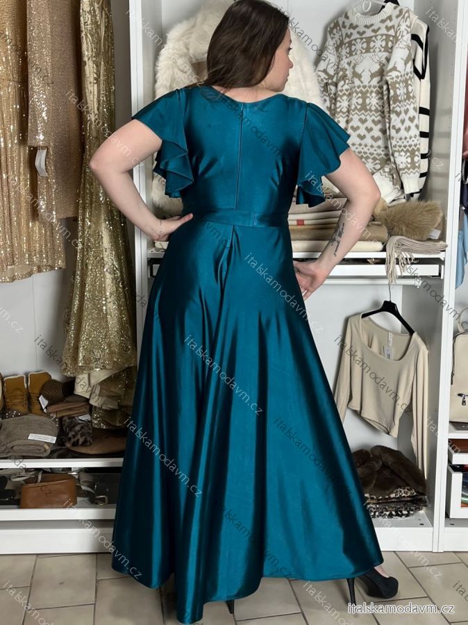 ZBOŽÍ (22068) > Šaty dlouhé společenské krátký rukáv dámské nadrozměr (36-52) POLSKÁ MÓDA PMLMR25INES5/DUR 48 tmavě zelená