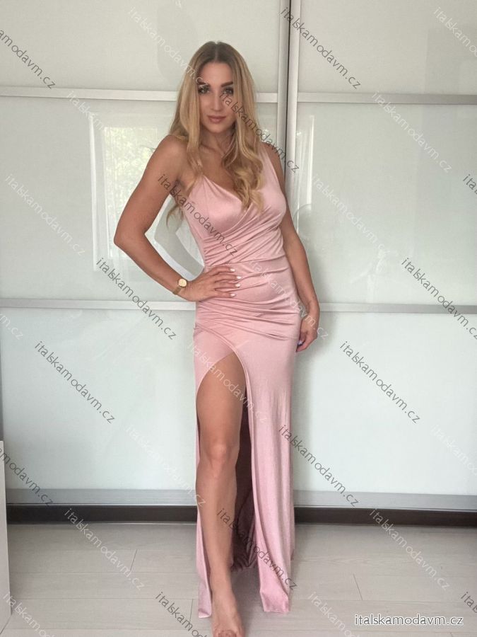 Šaty dlouhé společenské na ramínka dámské (XS/S/M ONE SIZE) ITALSKÁ MÓDA IMHMS251844/DU - světle modrá - S/M