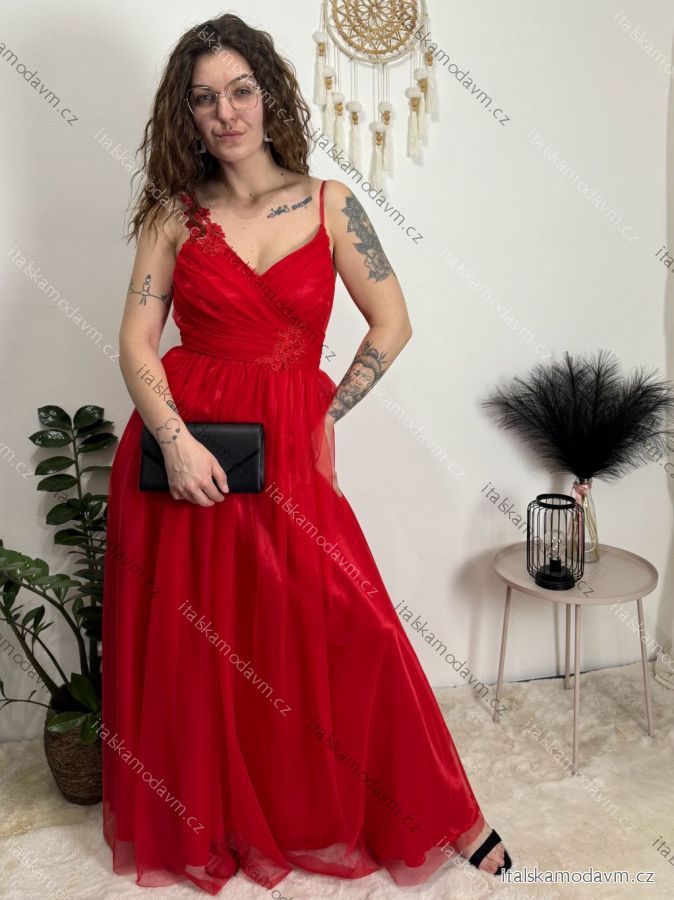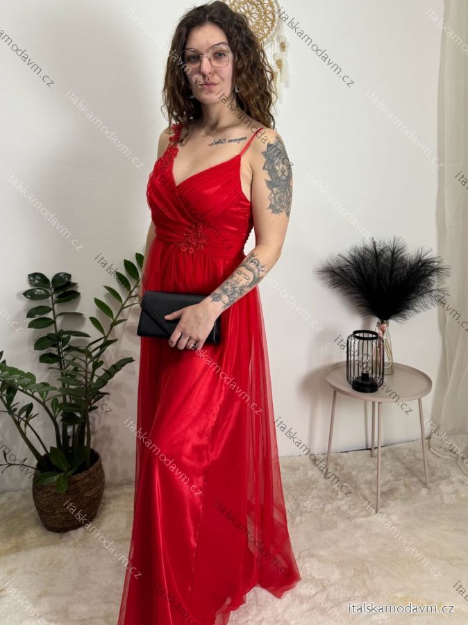Šaty dlouhé společenské na ramínka dámské ROMANCE (XS/S/M ONE SIZE) ITALSKÁ MÓDA IMC25412/DR Černá XS/S/M