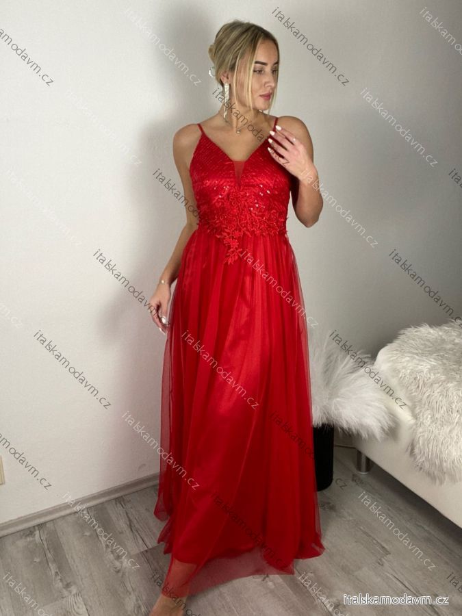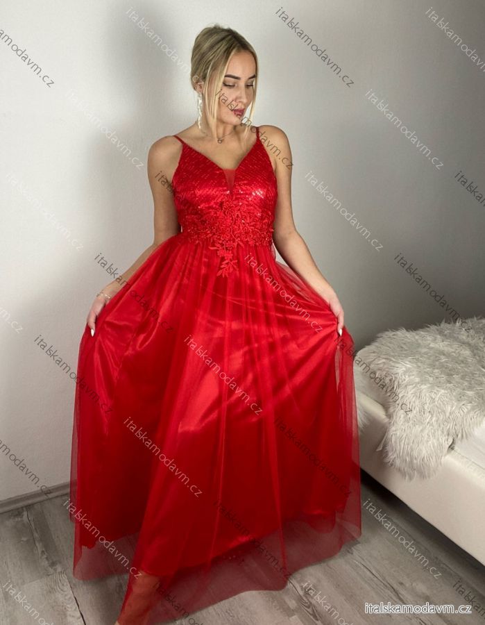 Šaty dlouhé společenské na ramínka dámské LEXI (S/M ONE SIZE) ITALSKÁ MÓDA IMC25570