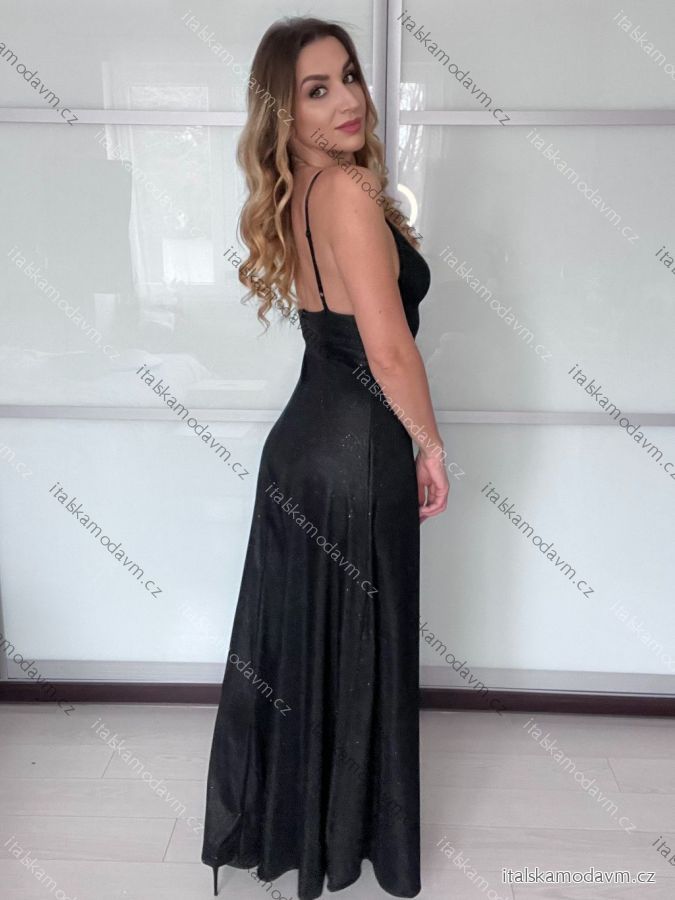 Šaty dlouhé společenské na ramínka dámské SARA (S/M ONE SIZE) ITALSKÁ MÓDA IMPMD2616090/DU S/M Černá