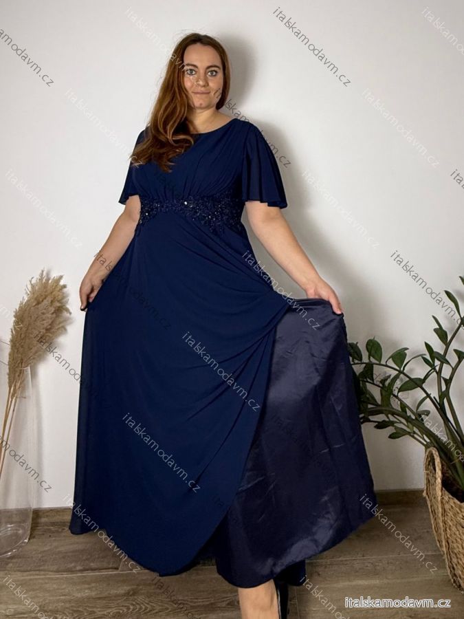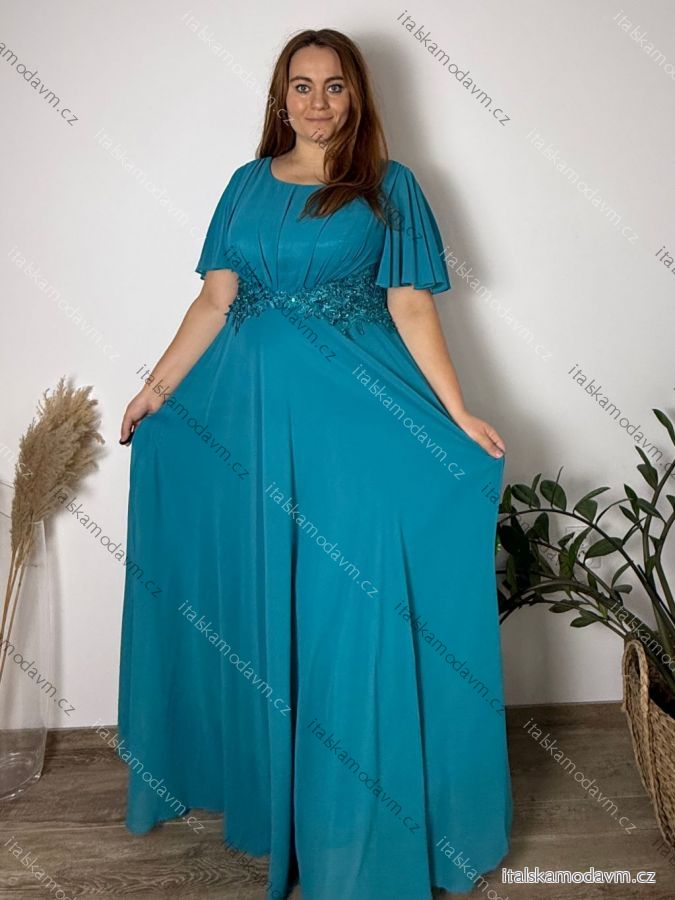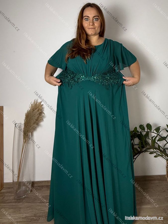 Šaty dlouhé společenské s žabičkováním krátký rukáv dámské nadrozměr RIKI (48/50/52 ONE SIZE) ITALSKÁ MÓDA IMC25522