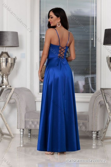 Šaty dlouhé společenské saténové na ramínka dámské (34-42) POLSKÁ MÓDA PMLEL24NATHALIEA3 modrá královská 38