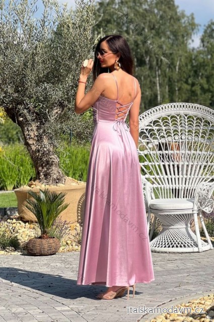 Šaty dlouhé společenské saténové na ramínka dámské (34-42) POLSKÁ MÓDA PMLEL24NATHALIEA5 růžová 42