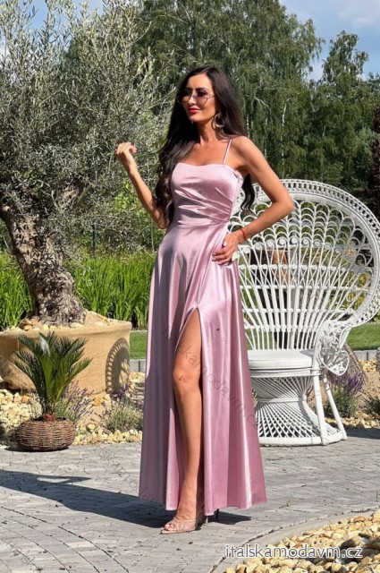 Šaty dlouhé společenské saténové na ramínka dámské (34-42) POLSKÁ MÓDA PMLEL24NATHALIEA5 růžová 34