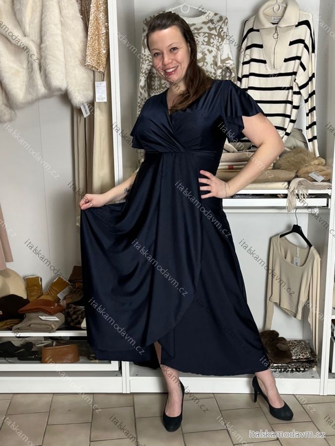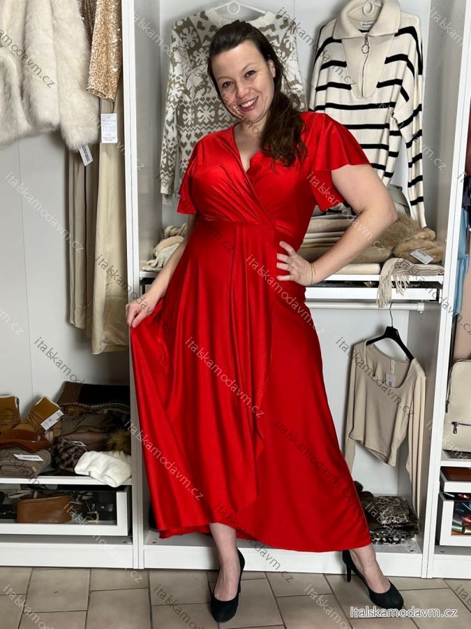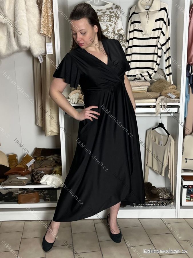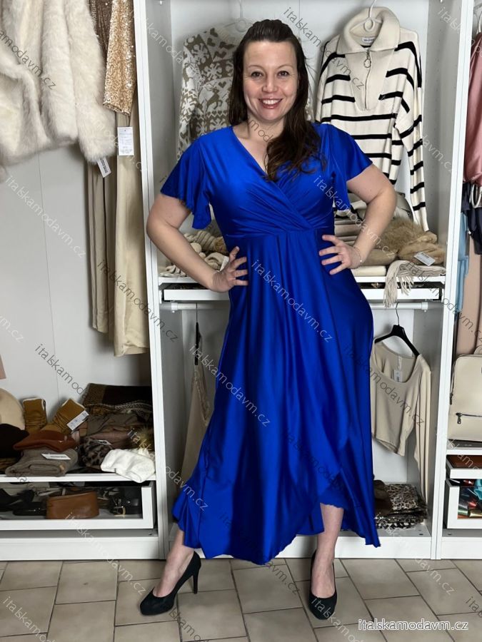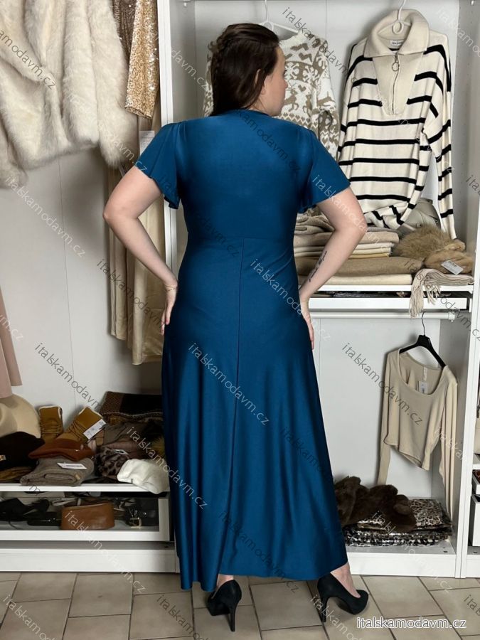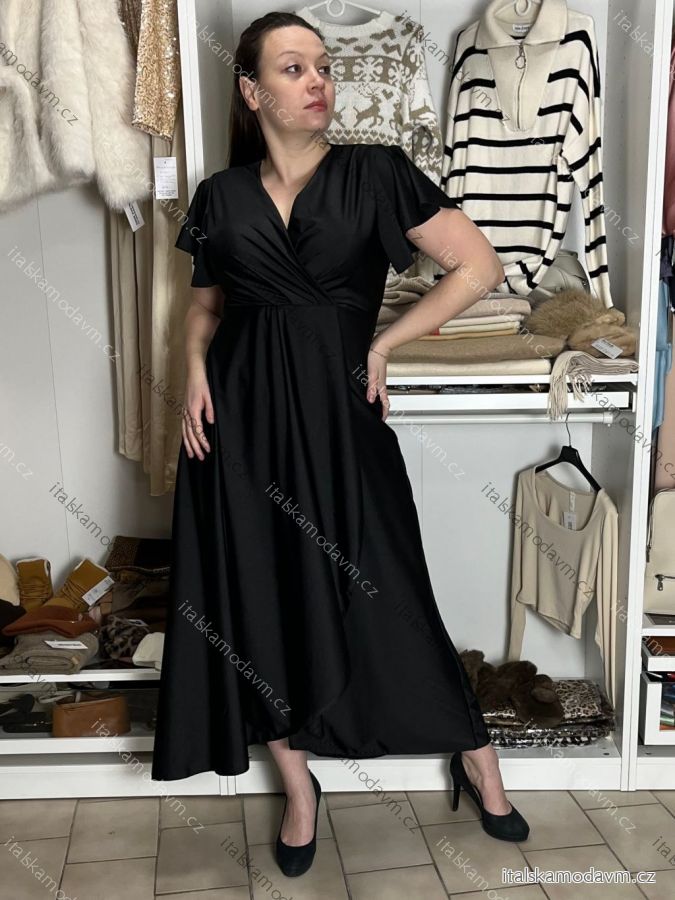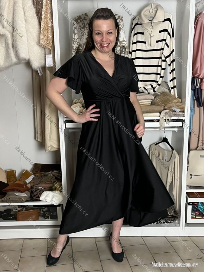 Šaty dlouhé společenské saténové krátký rukáv dámské ADINA (38/40/42 ONE SIZE) ITALSKÁ MÓDA IM425896