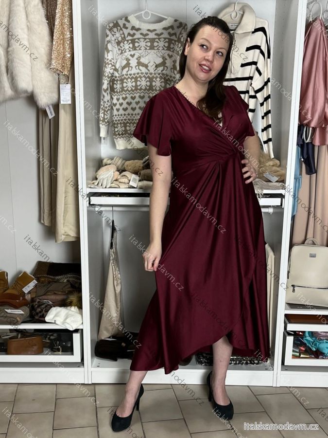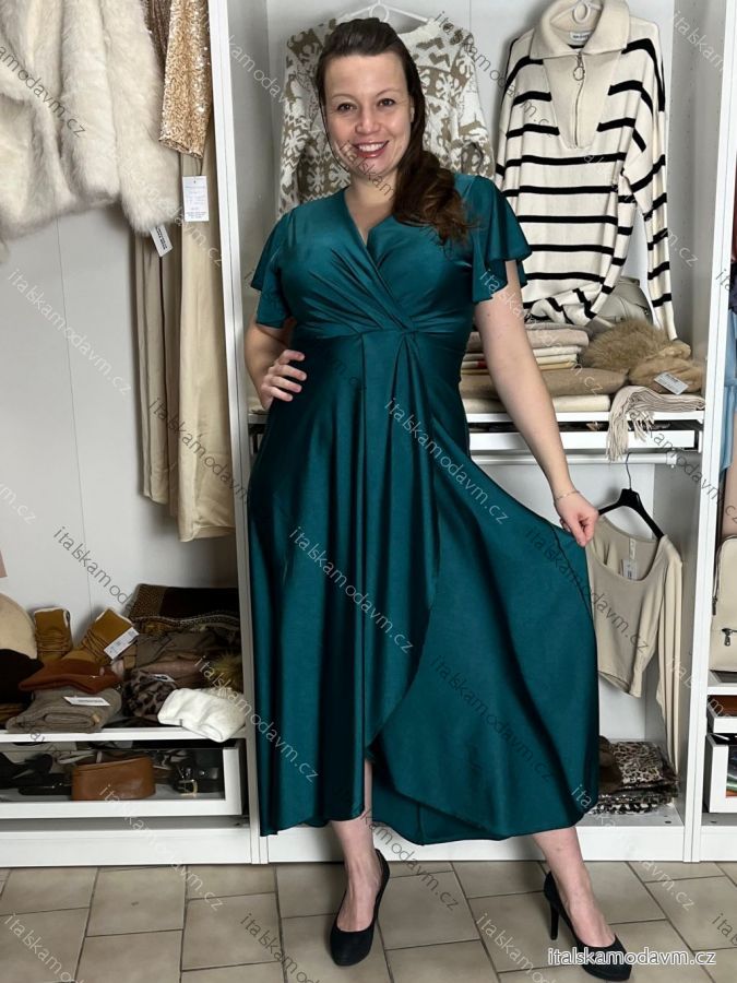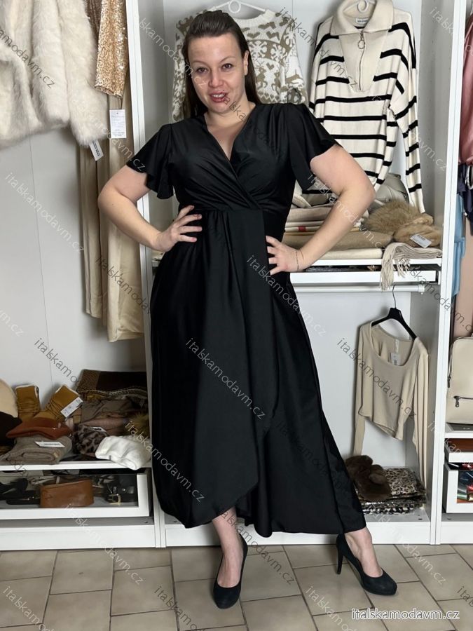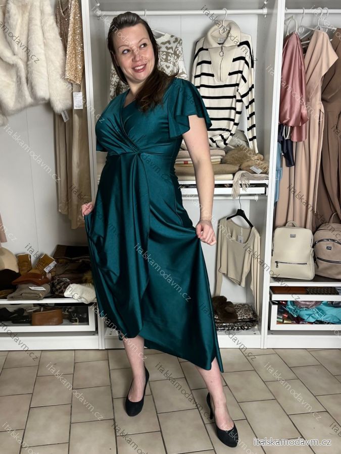 ZBOŽÍ (22070) > Šaty dlouhé společenské saténové krátký rukáv dámské ADINA (38/40/42 ONE SIZE) ITALSKÁ MÓDA IM425896