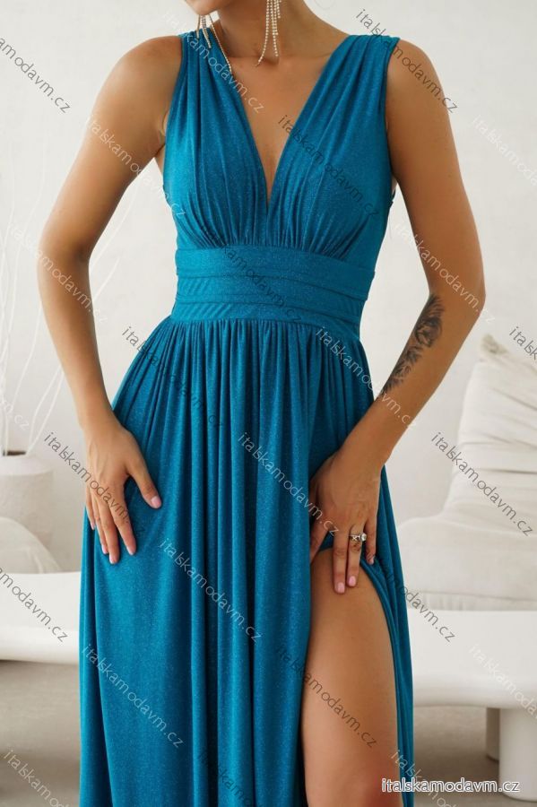 Šaty dlouhé společenské třpytivé s flitry bez rukávu dámské nadrozměr (34-46) POLSKÁ MÓDA PMLWD23VIRGINIA11/DU