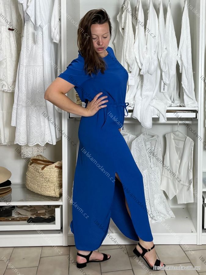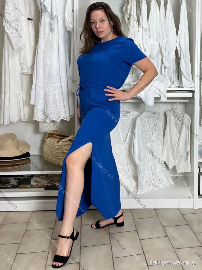 Šaty dlouhé sportovní stahovací krátký rukáv dámské nadrozměr (M/L/XL ONE SIZE) ITALSKÁ MÓDA IMD22489/DUR kr. modrá M/L/XL