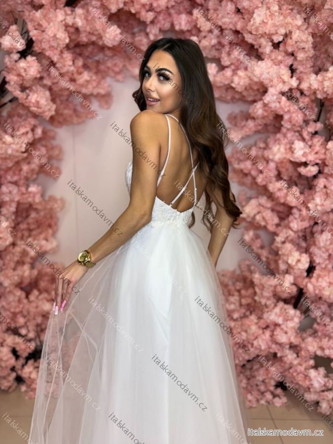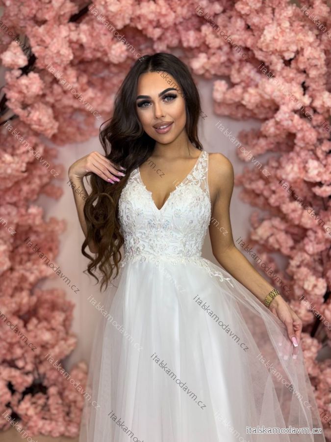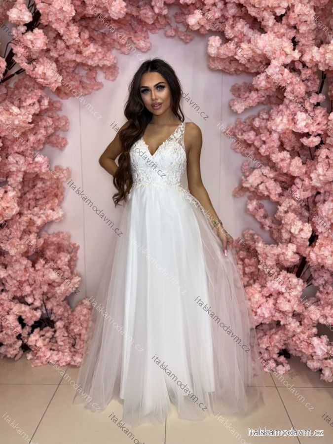 Šaty dlouhé svatební krajkové bez rukávu dámské PRINCESSA (34-40) POLSKÁ MÓDA PMLPT26009
