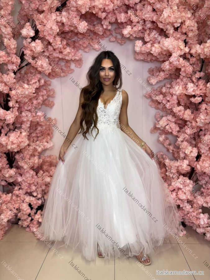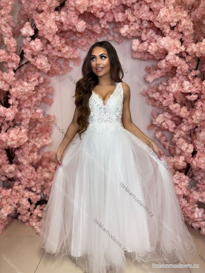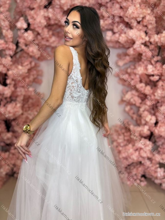 Šaty dlouhé svatební krajkové bez rukávu dámské nadrozměr NELA (34-46) POLSKÁ MÓDA PMLPT26013