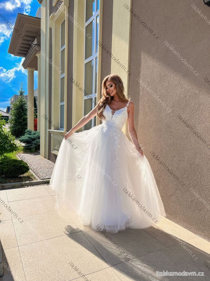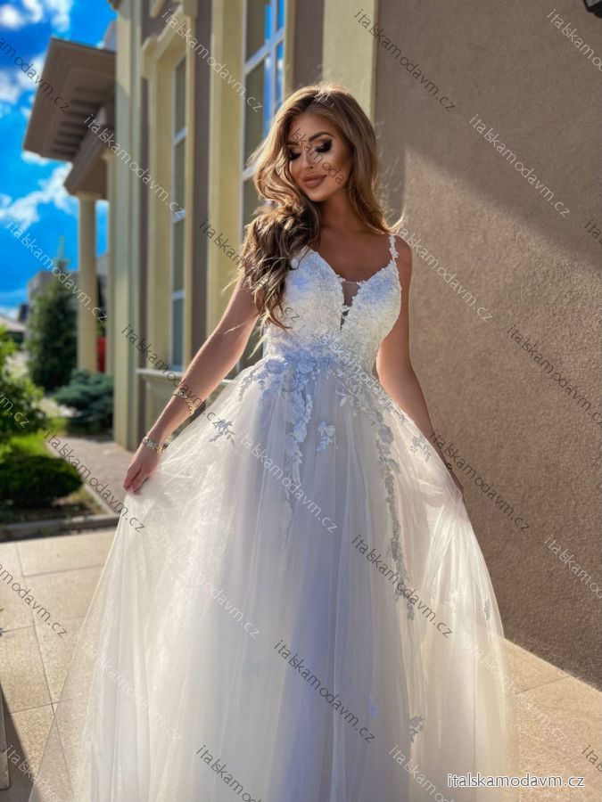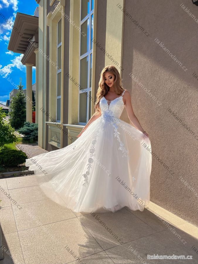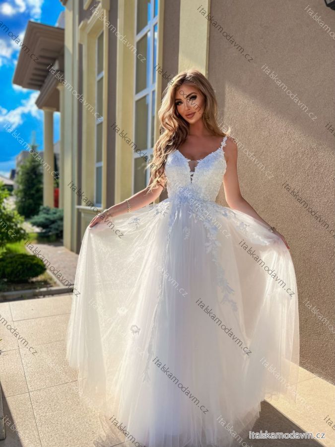 Šaty dlouhé svatební krajkové na ramínka dámské nadrozměr GARDEN (34-46) POLSKÁ MÓDA PMLPT26012