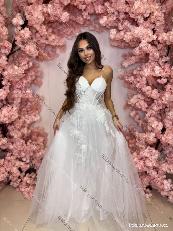 Šaty dlouhé svatební na ramínka dámské POSITANO (34-40) POLSKÁ MÓDA PMLPT26015