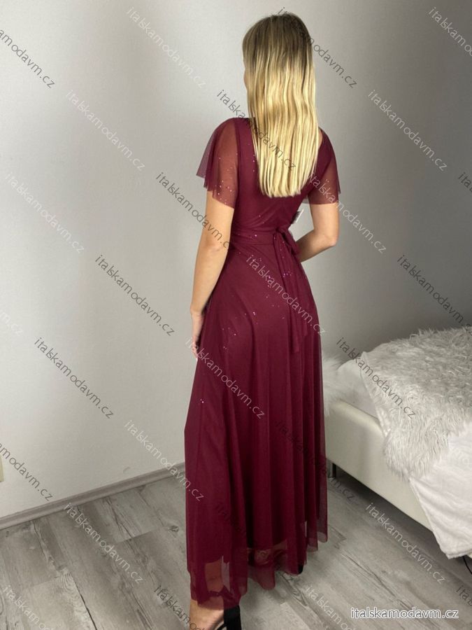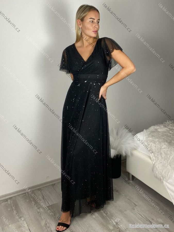 Šaty dlouhé třpytivé společenské krátký rukáv dámské (S/M ONE SIZE) ITALSKÁ MÓDA IMPSH2423589/DUR S/M Černá