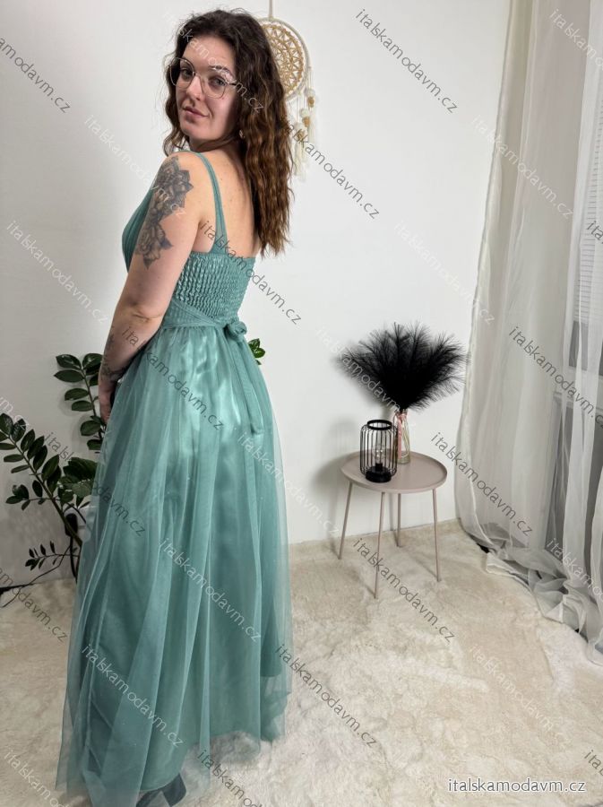 Šaty dlouhé třpytivé tylové společenské na ramínka dámské (S/M/L ONE SIZE) ITALSKÁ MÓDA IMC23480
