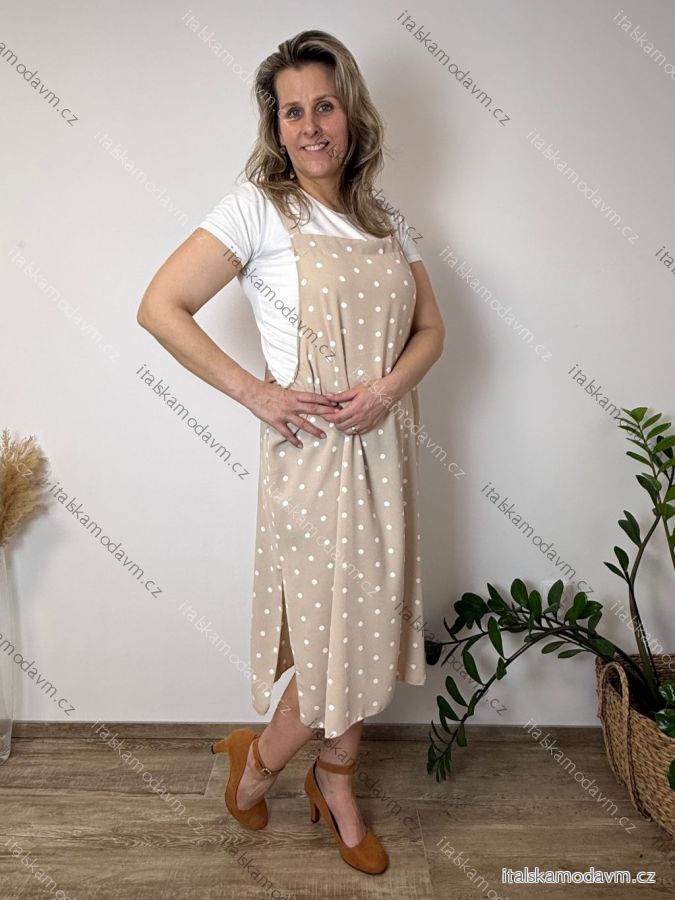 ZBOŽÍ (22203) > Šaty džínové letní stahovací s kapsami na ramínka dámské HONEY (M/L/XL ONE SIZE) TALIANSKA MÓDA IMC2600011/DU M/L/XL béžová