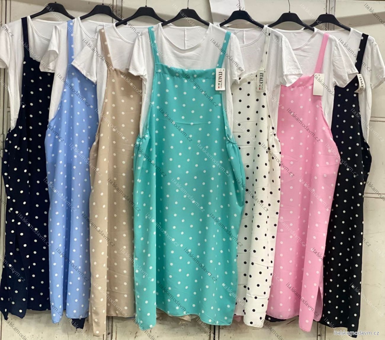 ZBOŽÍ (22239) > Šaty džínové letní stahovací s kapsami na ramínka dámské HONEY (M/L/XL ONE SIZE) TALIANSKA MÓDA IMC2600011