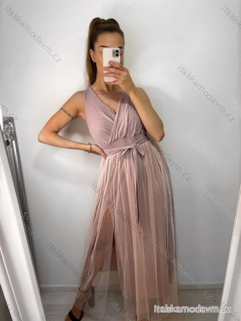 ZBOŽÍ (21839) > Šaty elegantné dlhé na ramienka šifónové dámske (S/M ONE SIZE) TALIANSKA MODA IMM22Q52303/DU