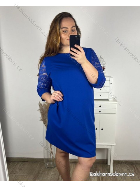 Šaty elegantné spoločenské 3/4 rukáv dámske nadrozmer (44-56) POLSKÁ MÓDA PMFF24DITA3/DUR - kráľovská modrá - 52