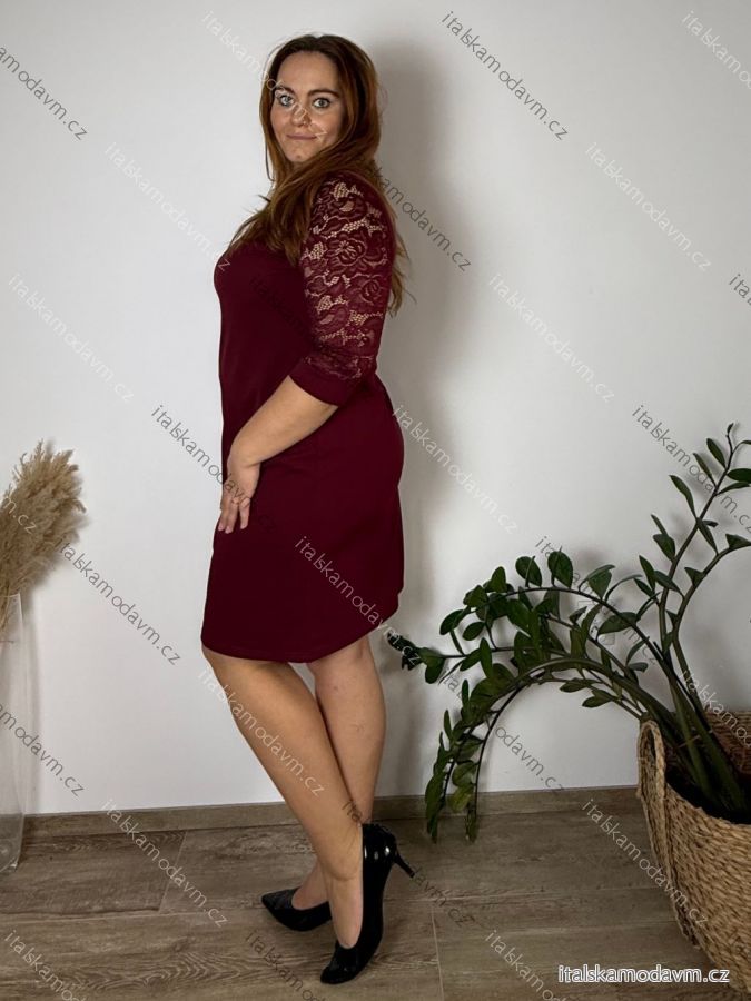 Šaty elegantné spoločenské 3/4 rukáv dámske nadrozmer (42-56) POLSKÁ MÓDA PMFF24DITA6/DU 46 vínová