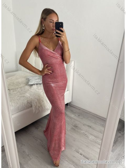 Šaty elegantné spoločenské dlhé na ramienka dámske (S/M ONE SIZE) TALIANSKA MóDA IMM22LS16104 červená S/M