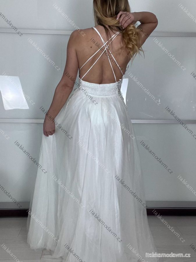 Šaty elegantné spoločenské/svadobné na ramienka dámske (S/M.ONE SIZE) TALIANSKA MÓDA IMM2218831-1/DUR S / M biela