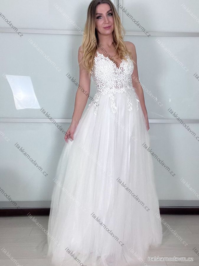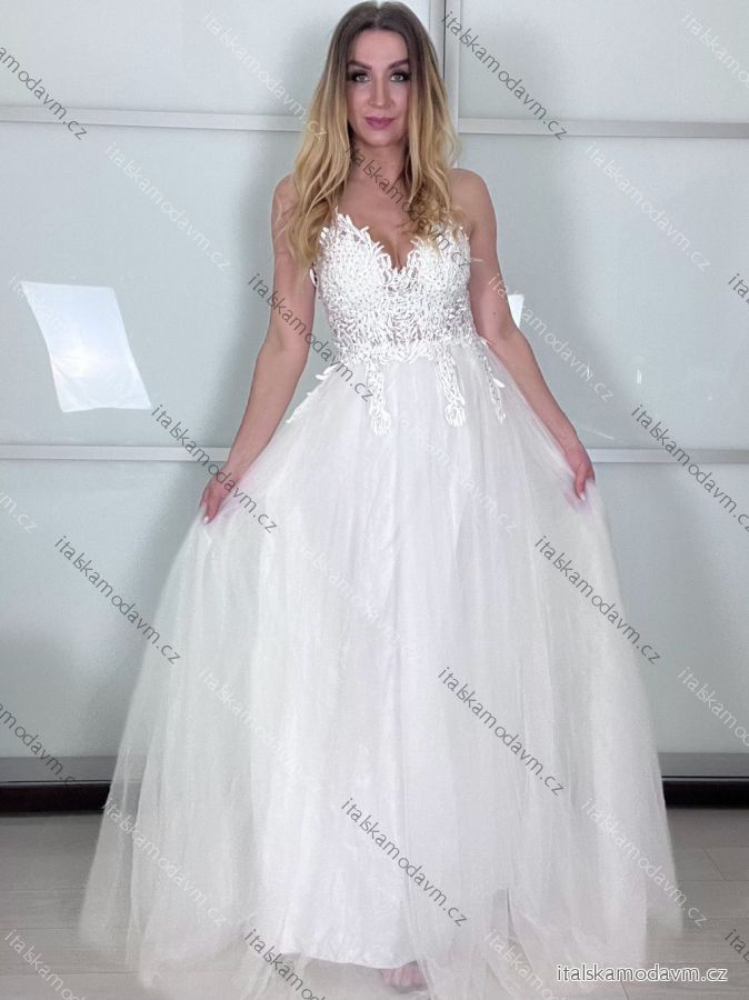 ZBOŽÍ (22219) > Šaty elegantné spoločenské/svadobné na ramienka dámske (S/M.ONE SIZE) TALIANSKA MÓDA IMM2218831-1/DUR S / M biela