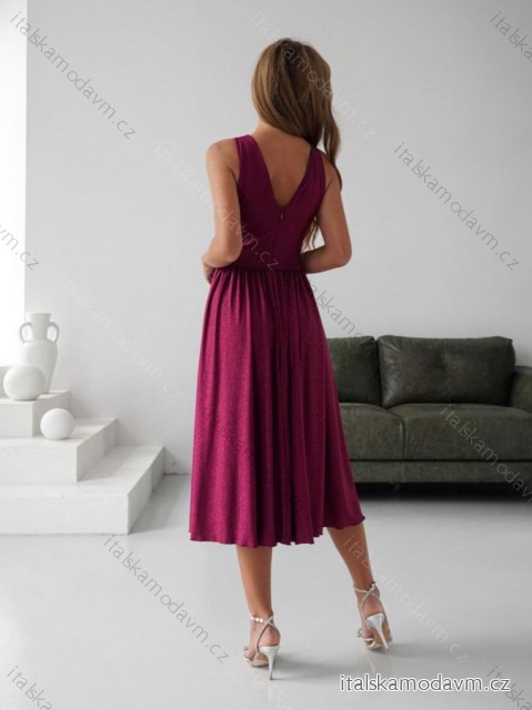 Šaty elegantné trblietavé bez rukávu dámske nadrozmer (34-44) POLSKÁ MÓDA PMLWD24ROMA-9 vínová 40