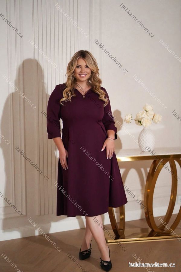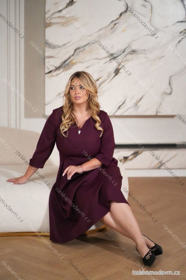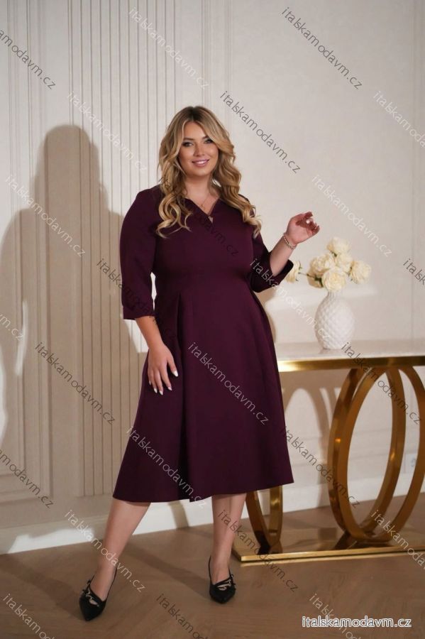 Šaty elegantní 3/4 rukáv dámské nadrozměr (40-50) POLSKÁ MÓDA PMLLD255098-3/DUR 44 vínová