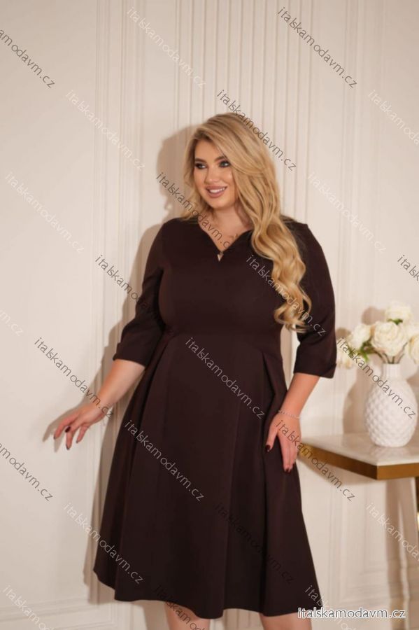 Šaty elegantní 3/4 rukáv dámské nadrozměr (40-50) POLSKÁ MÓDA PMLLD255098-1/DUR 50 hnědá