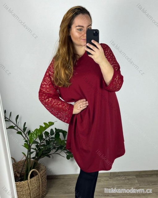 ZBOŽÍ (22895) > oblečenie dámske (18241) > šaty (9693) > Šaty elegantní dlouhý rukáv dámske nadrozmer (3XL/4XL ONE SIZE) TALIANSKA MóDA IM424BELLA/DU vínová 3XL/4XL