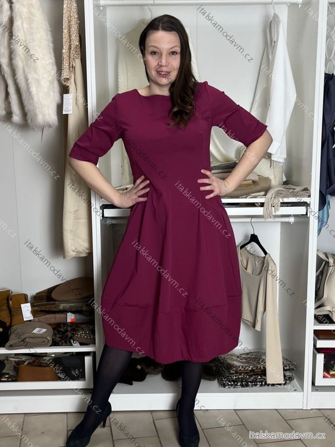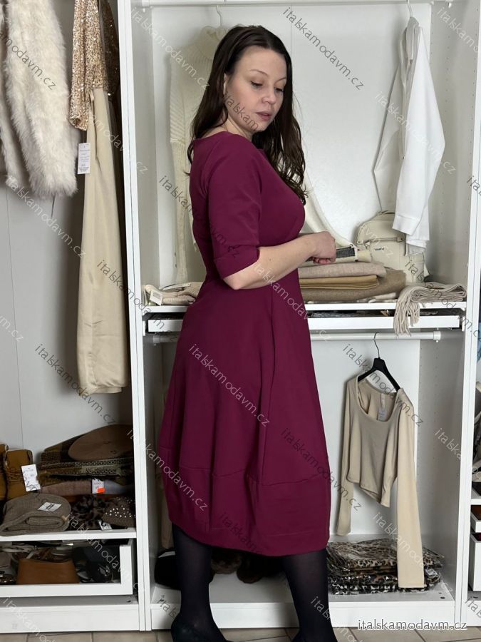 Šaty elegantní dlouhý rukáv dámské (M-2XL) ITALSKÁ MÓDA IMSE26001/DU - vínová - 2XL