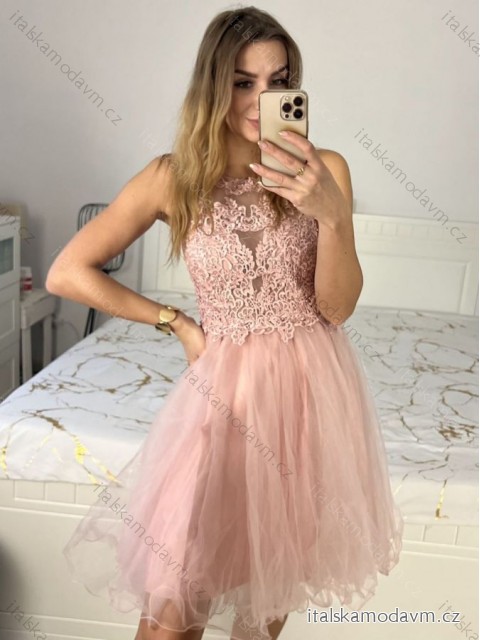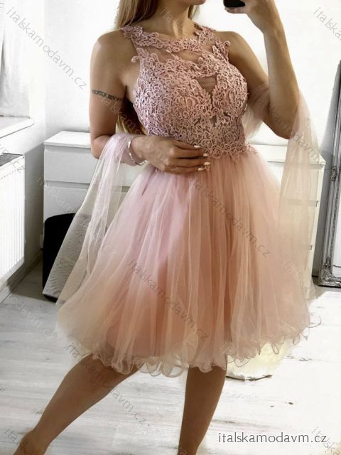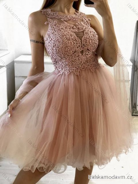 ZBOŽÍ (21649) > Šaty elegantní krajkové plesové krátké dámské (S/M ONE SIZE) ITALSKÁ MÓDA IMM2219810/DU - světle růžová, S/M