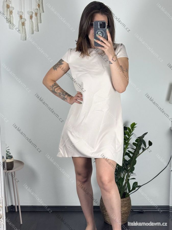 ZBOŽÍ (22545) > Šaty elegantní krátký rukávek letní dámské (36-38-40-42-44) Polská MÓDA PMLK21LEILABE/DUR 42 béžová