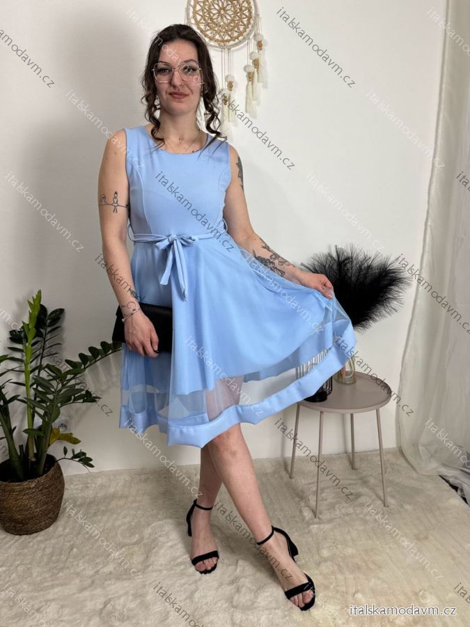 Šaty elegantní letní bez rukávu dámské (S/M/L ONE SIZE) ITALSKÁ MÓDA IM322SIMONE/DR svetlo modrá S/M/L
