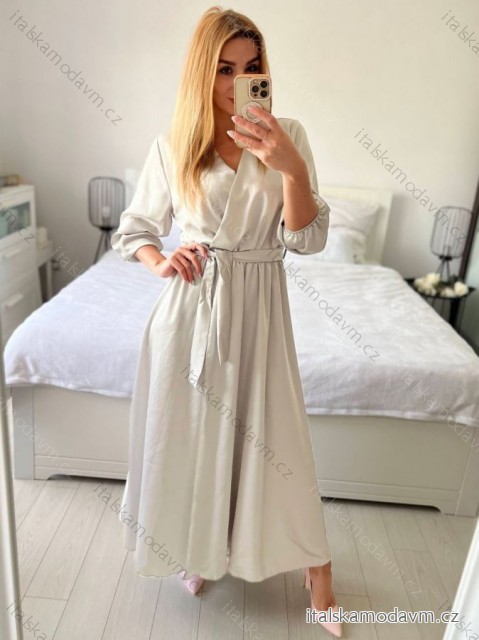 Šaty elegantní saténové dlouhý rukáv dámské (S/M.ONE SIZE) ITALSKÁ MÓDA IMM22HG3893/DU - šedá světlá - S/M