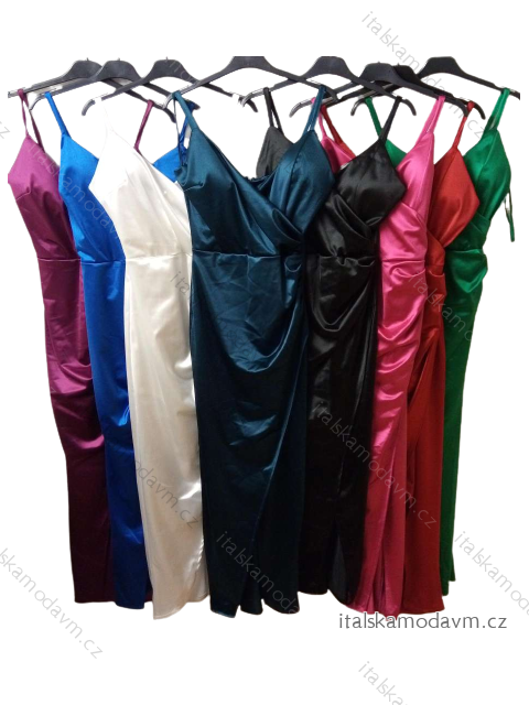 Šaty elegantní saténové společenské na ramínka dámské, vzadu zapínaní na zip, prsa s vycpávky,