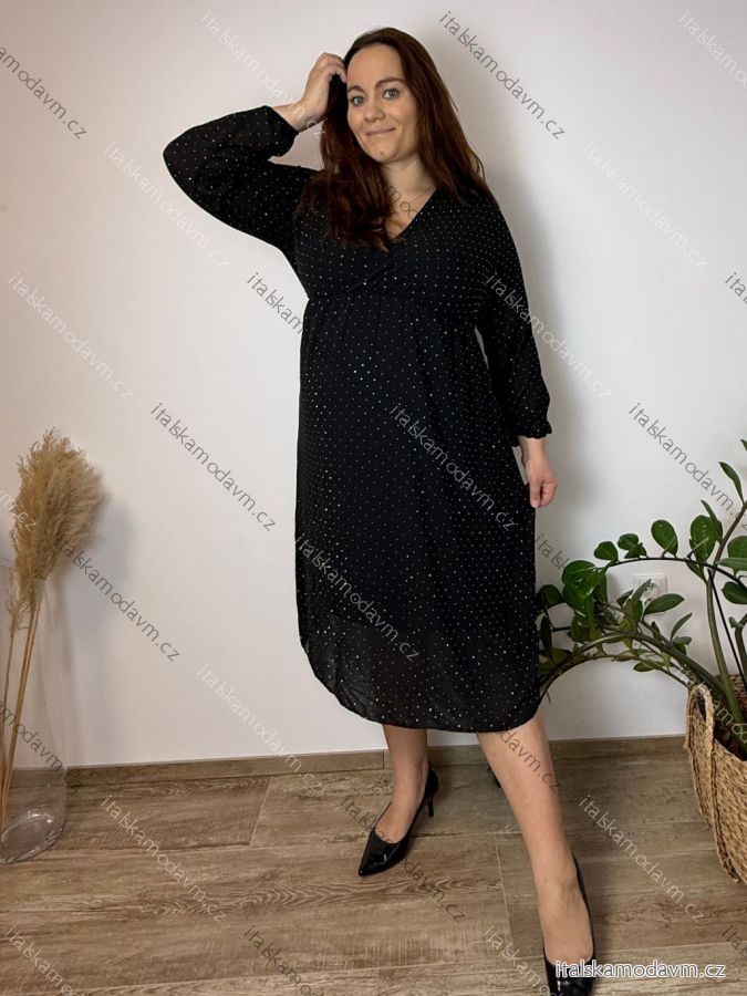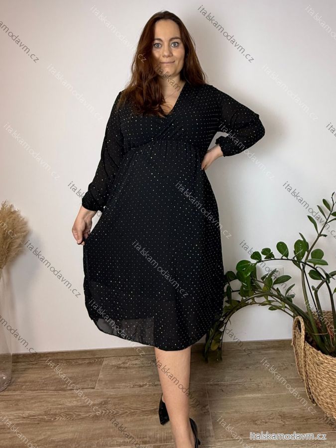 Šaty elegantní šifonové dlouhý rukáv dámské nadrozměr GITA (48/50/52 ONE SIZE) ITALSKÁ MÓDA IMWHA25500/DU 48/50/52 Černá
