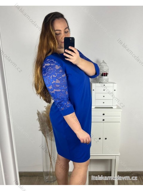 Šaty elegantní společenské 3/4 rukáv dámské nadrozměr (44-56) POLSKÁ MÓDA PMFF24DITA3/DUR - královská modrá - 46