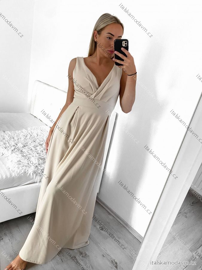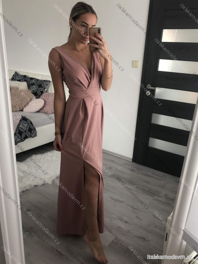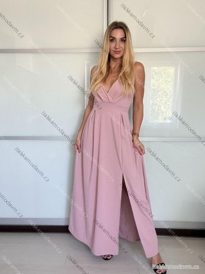 ZBOŽÍ (21987) > Šaty elegantní společenské dlouhé na ramínka dámské (M/L ONE SIZE) ITALSKÁ MÓDA IM322045/DR/DUstř. modrá