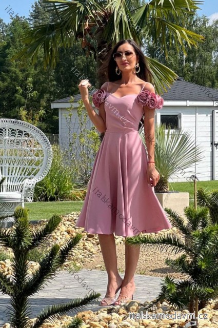 Šaty elegantní společenské na ramínka dámské (34-42) POLSKÁ MÓDA PMLEL24FLOWER5 růžová starorůžová 42