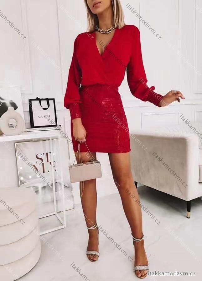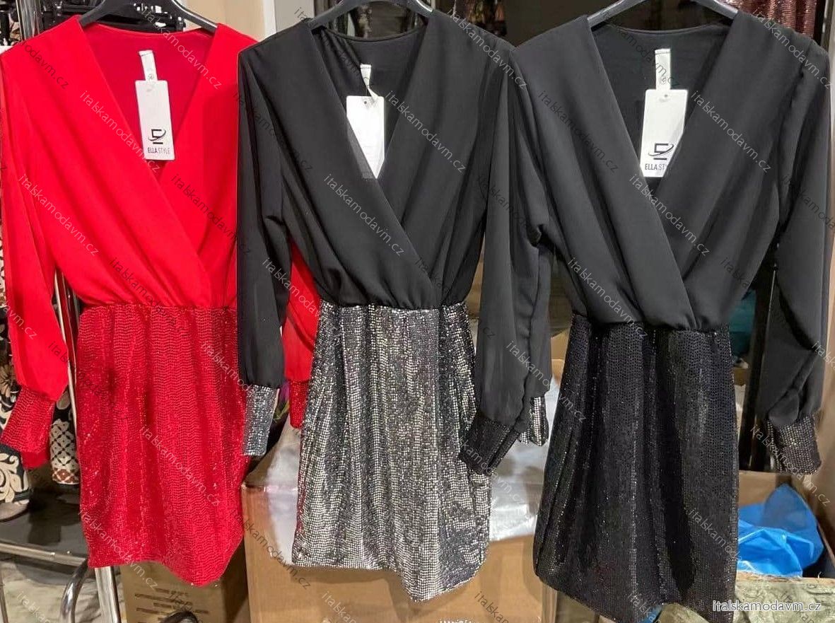 Šaty elegantní třpytivé s flitry dlouhý rukáv dámské (S/M ONE SIZE) ITALSKá MóDA IMM22EL2717