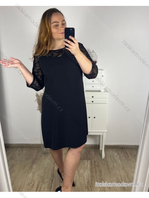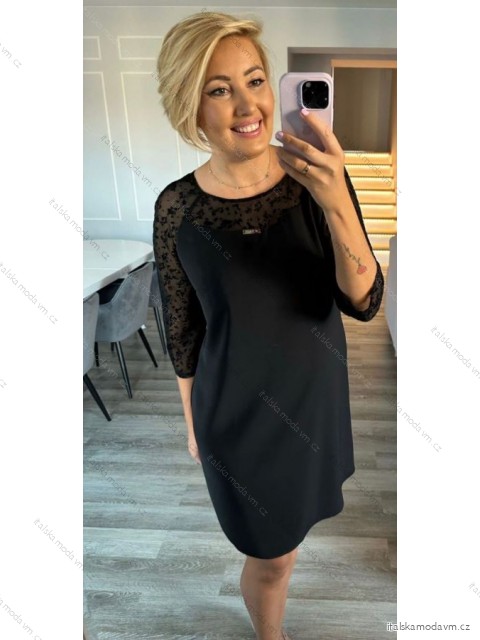 Šaty elegantný dlhý rukáv dámske nadrozmer (42-50) POLSKÁ MÓDA PMLTR24TK-24B/DUR - čierna - 48