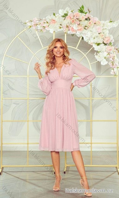 Šaty elegantný dlhý rukáv dámske nadrozmer (34-46) POLSKÁ MÓDA PMLWD24ROSALIA-1 ružová 34