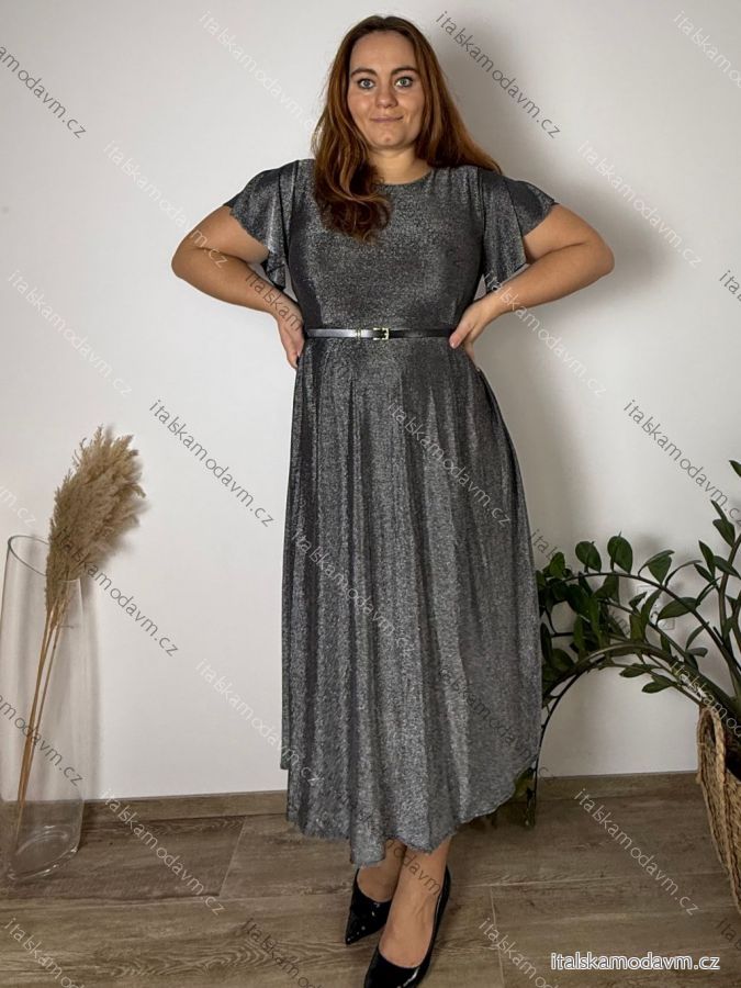 ZBOŽÍ (21991) > Šaty elegantný s páskem krátký rukáv dámske nadrozmer LEONA (42/44/46 ONE SIZE) TALIANSKA MÓDA IM425706