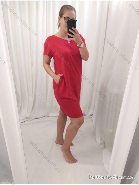 Šaty klasik bavlněné krátký rukáv dámské (XL/2XL ONE SIZE) ITALSKÁ MÓDA IM322104/DR