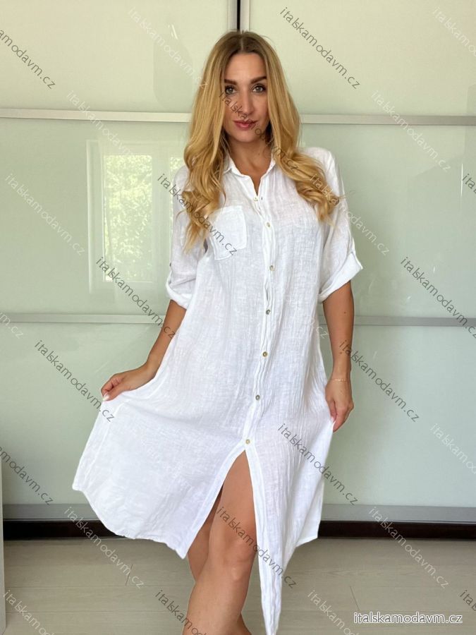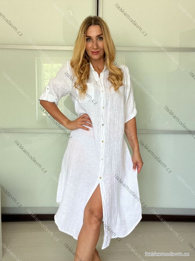 ZBOŽÍ (22035) > Šaty košeľové ľanové 3/4 dlhý rukáv dámske (S/M/L ONE SIZE) TALIANSKA MODA IM725157/DU - zelená khaki - S/M/L