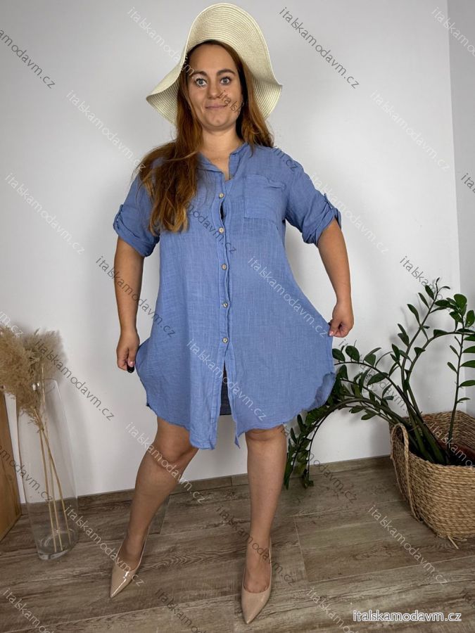 ZBOŽÍ (22598) > Šaty košilové 3/4 rukáv dámské nadrozměr (44/46/48 ONE SIZE) ITALSKÁ MÓDA IMBM24101/DR 44/46/48 modrá
