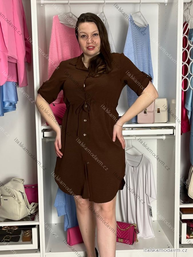ZBOŽÍ (21942) > Šaty košilové stahovací 3/4 dlouhý rukáv dámské (S/M/L ONE SIZE) ITALSKÁ MÓDA IMSM26072/DU S/M/L hnědá